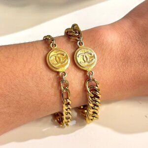 Repurposed Chanel Pendant in Large Cuban Link Bracelet