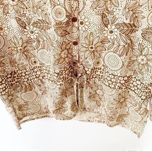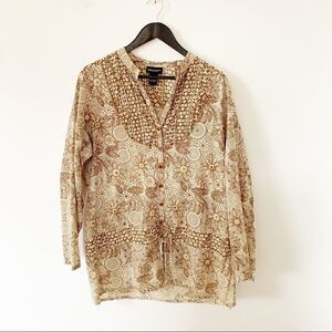 Request Gold Beige Tans Gold Sequin Floral Print Button Down Tunic Blouse