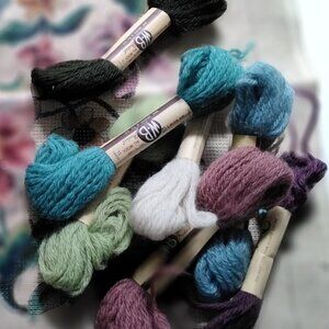 Partially completed, this is a vintage Penelope tapestry/embroidery picture from the 1960s/1970s. It is a stamped canvas depicting a floral design. It is pattern F5114, Queen Anne. It was made in England. Included are 8 skeins of Penelope wool tapestry yarn. The canvas is 17 x 17 inches and does need cleaning. It would be a fun project for the crafter who likes to rescue projects!