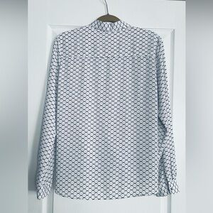 Elevate your wardrobe with this elegant women's top featuring a stylish geometric pattern. Perfect for any occasion, this top combines comfort with a chic design. The classic white and black colors make it versatile and easy to pair with any outfit.