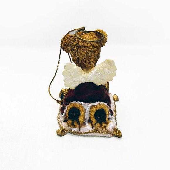 Noel Collections, Resin Angel Bear Holding a Teddy Bear. Bear is App. 3.5"x2.5" & Gold String For Tree Is 3". Bear Is In Very Good, Pre-Owned Condition. There Is Some Writing on Bottom That I Wasn't Able To Get Off (name/date), but No Chips or Breaks. Comes With Original Box. Box Has Ware.