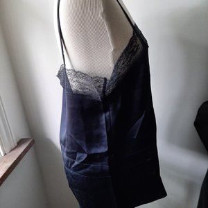Resort Wear NWOT Max Mara Navy Silk Camisole Top Lace trim sz 46/14 Lingerie