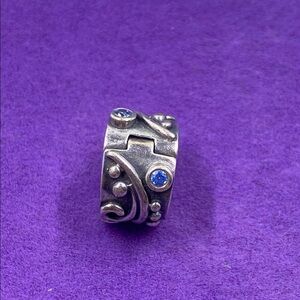 💛 Retired Sterling Silver Pandora Tendril Blue CZ Charm Clip