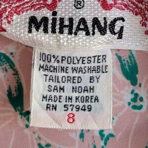 This vibrant Mihang vintage maxi dress from the 1980s combines a colorful pink and green palette with retro charm.