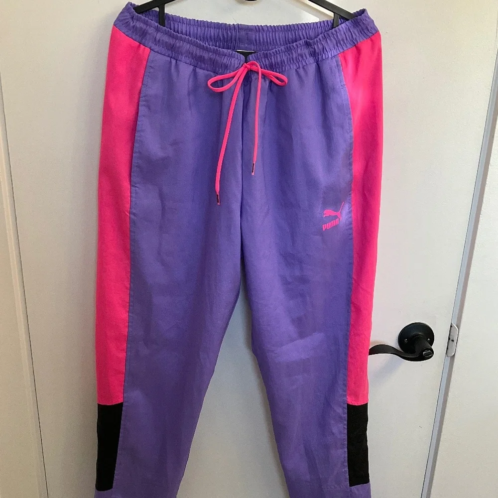 Retro 90’s vibe Puma sports pants in purple, pink, and black - size medium