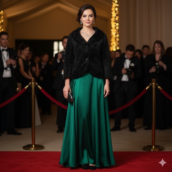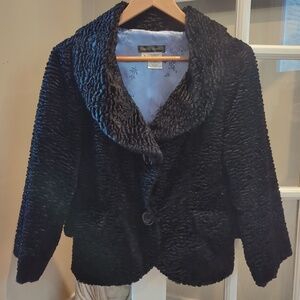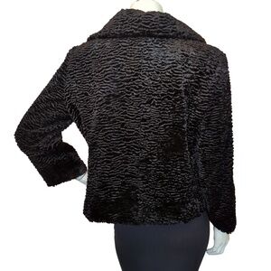 Retro Black Wool Blend Faux Persian Lambswool Short Coat Formal Dressy