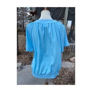 Retro Blair Blue Blouse Top Short Sleeve Raglan Sleeve Stretch Hem Sz M