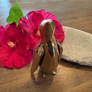Add a touch of vintage charm to your home with this adorable solid brass penguin figurine. This sleek, highly polished piece features a great Mid-Century Modern or minimalist aesthetic. It's substantial and heavy, making it a perfect paperweight or stylish accent.