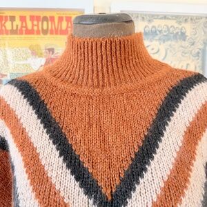 Retro Look Cozy Rust Chevron Knit Mohair Sweater