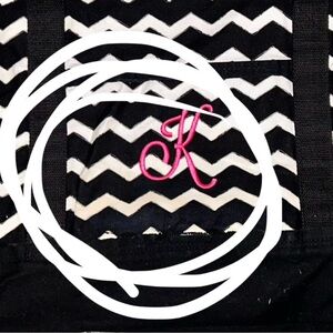 Embroidered with a hot pink “K” as seen.