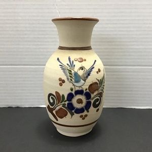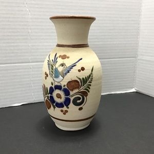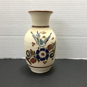 Retro Mexican Tonalá Vase with Little Bird