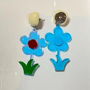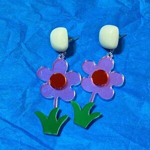 Retro Mod Flower Power 60s Acrylic Daisy Pierced Statement Earrings