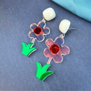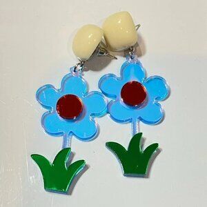 Retro Mod Flower Power 60s Acrylic Daisy Pierced Statement Earrings