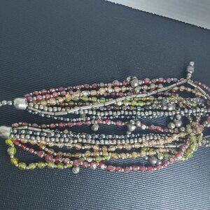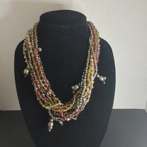 Retro Multi-Strand Denim Multicolor & Silver Tone tube Glass Beads Necklace Boho