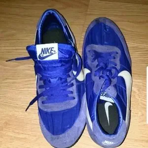 Lovely deep blue kicks from Nike. Great for casual summer night strolls. Lightly used, with a small mark on the front right toe.