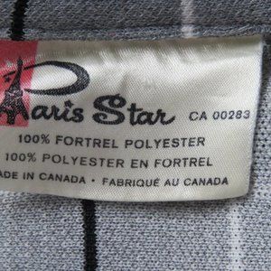 Awesome retro plaid ladies blazer from the '70s. A great vintage jacket made of fortrel polyester, a popular fabric in the 70's. In a grey, black & white plaid, the jacket is single breasted with an oversized lapel & pockets. The jacket was made by Paris star in Canada & is unlined with fantastic vintage buttons. In good vintage condition with minimal wear. The size tag is missing but it measures between an 6-8.