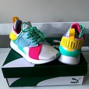 Retro coloured pump sneakers. bright pink, yellow and teal colours on a white background. New in box, never worn. Size 3uk fits size 5.5/6 in ladies shoes.