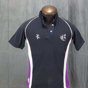 Up for sale is a retro rugby jersey. It is a jersey for the 2008 Hong Kong Rugby 7s and it has a blue base colour with white and purple trim. The front of the jersey has the Kukri and Chinese Character HK7s logos stitched in. The back of the jersey has a large graphic of the Hong Kong 7s logo screened on with 08 sittiched in just below the neck. What a great jersey do not miss out on it.