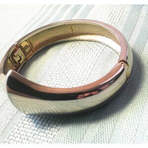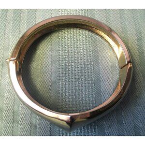 Retro Silver & Gold-Tone Hinged Bracelet – Vintage Statement Jewelry Small