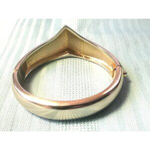 This Small Retro Silver & Gold-Tone Hinged Bracelet is a vintage statement piece that exudes a retro vibe from the 1980s.