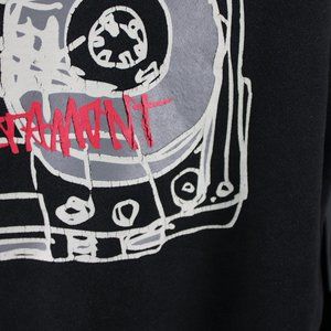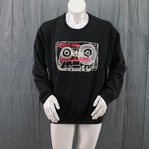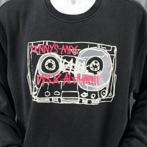 Up for sale is a retro skateboard sweater. It has a black base colour with a cassette screened on in white. Over top of the cassette, Kenny's mix tape is screened on in red. What a great sweater do not miss out on it.