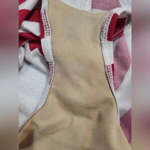 Please note: The lines on the bikini bottom do not line up, so this was purchased new "with flaws" (Photo 3). Also, the bikini neck ties have a bit of red staining from when my hair was dyed and the colour transfered in the water (photo 9)... See all photos.