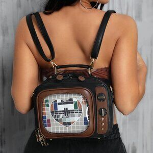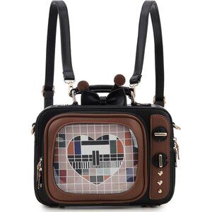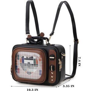 Retro TV Shaped Ita Backpack with Pin Display and Inserts Crossbody Purse