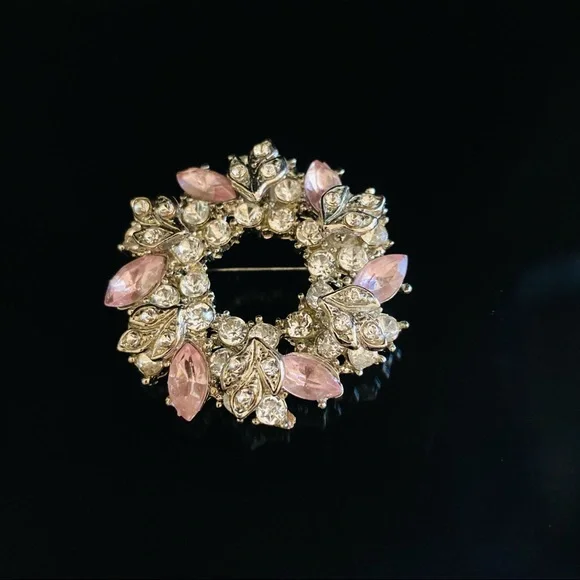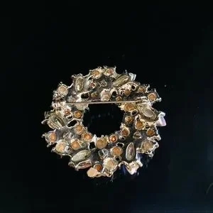 Retro Wreath Rhinestone Brooch, Rhodium Plated Preloved Good Condition Measurements: 1.5” diameter
