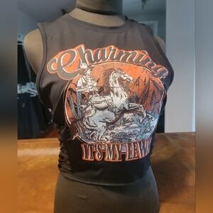 Awesome retro crop top featuring a cowgirl on the front and cutout sides 😀