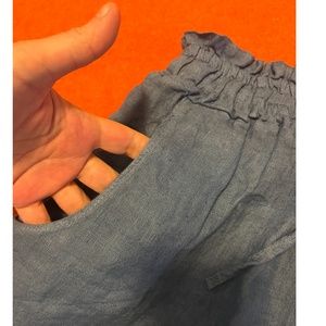 Retro blue high waist pure linen gathered shorts bermudas new with tags. High gathered wide elastic lace-up waist, side pockets, 100% linen, made in Italy. Marked size S. All measurements are approximate and taken with the garment laying flat : Waist 12" (stretches up to 19’’) Front rise 13’’ Inseam 3.5’’ This item comes from a smoke free, pets friendly home. Recycled bags/box used when possible. Please, let me know if you'd like any additional pictures and/or measurements or other info. Thanks for looking!