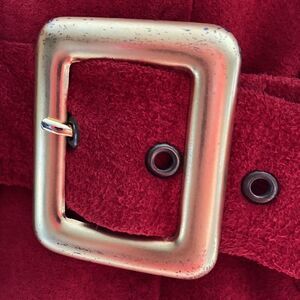 Retro 80s Danier Leather Genuine Suede Red Siren Shoulder Pads Fitted Jacket XS