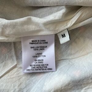 The shell is made from 100% linen for a breathable and structured drape, while the inner lining is soft 100% cotton for comfort. It closes with an invisible side zipper and is fully lined for coverage.