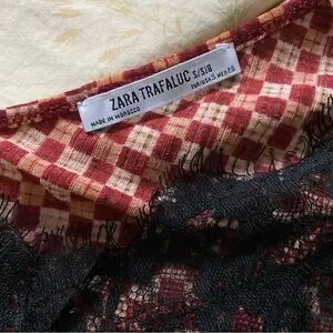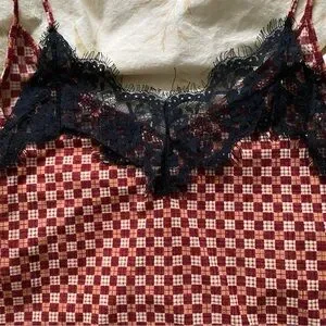 Very cool, 70s feel camisole top with geometric print and lace detailing. Brand: Zara Size: S