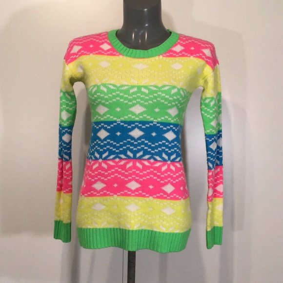 Retrod 80s Inspired Neon Knit Crew Neck Sweater Size S