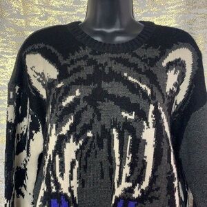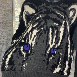 Retrod Grey With Tiger Print Logo Long Sleeve Knitted Sweater Size M