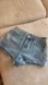 Chic light blue jean shorts. Features studded back pocket design. Perfect for a stylish casual look.