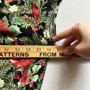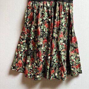 Retrolicious red cardinal bird floral mural fit & flare midi dress Sz S
