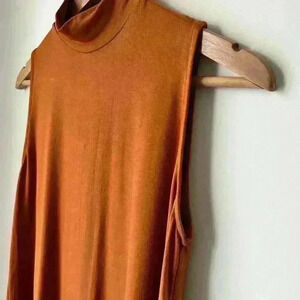 Retroluxe Women’s Sleeveless Rustic Orange Mock Neck Casual Summer Shirt Small