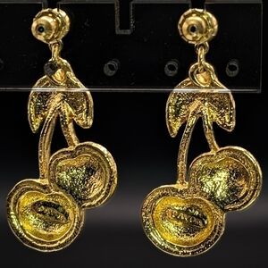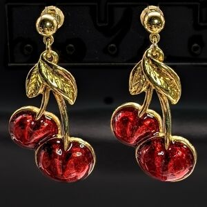 Retro-vintage Lot of 2 Red & Gold Toned Earrings - 1 Signed AVON (Cherries)