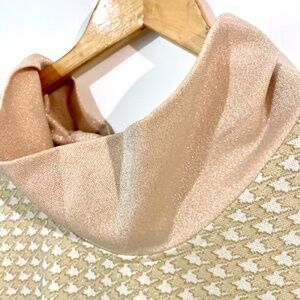 Vintage 60s style sleeveless dress with a high neck and a pattern of white on gold. Fits large or a looser medium. There’s a lovely shimmer/sparkle to it. Stretchy polyester. In new condition.