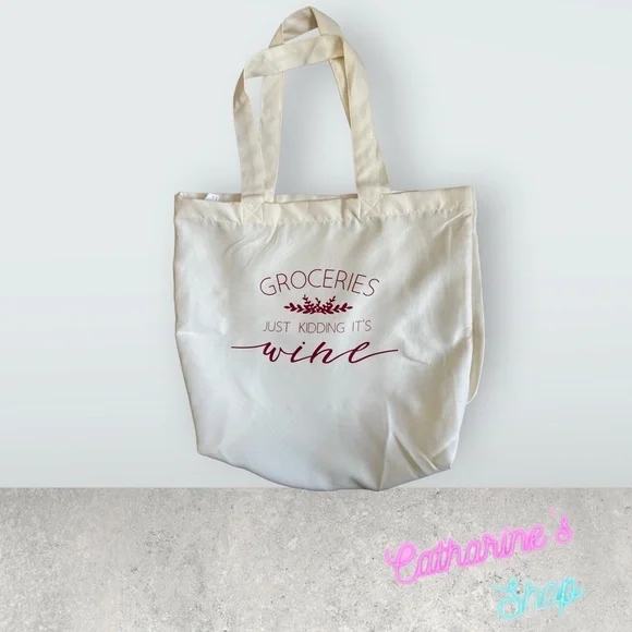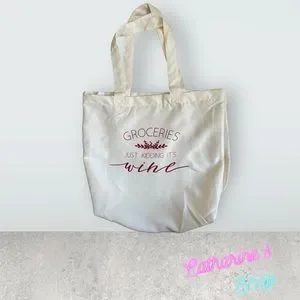 Groceries Just Kidding It’s Wine ironed onto a Unbleached coloured Tote bag