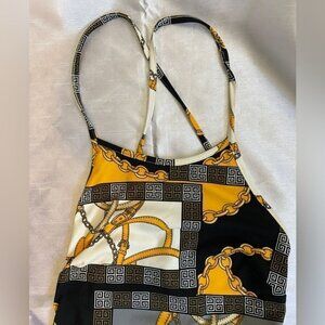 Revamped Chains and Belts Backless Halter Mini Dress Ladies M