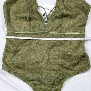 Brand new Revamped Green low-cut Bodysuits Lace Camisole US L