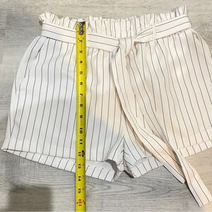 Revamped High Waisted Pinstriped Shorts Black & White Waist Tie Belt M