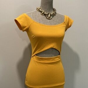 ReVamped women’s Mustard Yellow Cut-Out Dress