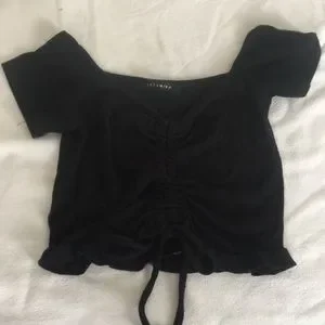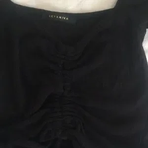 _#Revamped #RibKnit #RuchedCropTop #BlackCropTop #SizeSmall #VNeck #CapSleeve #LettuceTrim #DrawstringFront #AdjustableLength