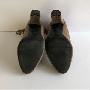 Revamped soft suede tie up ankle chunky heeled heel booties boots. Perfect for fall! Tan / brown in colour. Size 6. Great gently pre loved condition / EUC with flaw: some light wearing in parts of suede. No fabric or care tag attached.