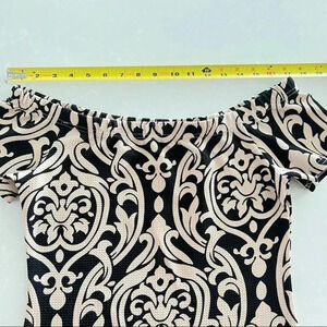 Revamped Waffled Printed Shoulder Y2K Dress Black Cream Dress Size XL