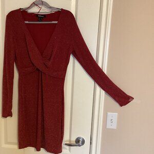Revamped Women's Red Sparkly Dress Size S/M Wrap Over Bodice Prom Party