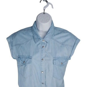 Revamped by Sirens Denim Romper Jumpsuit Blue Cuffed Leg XS